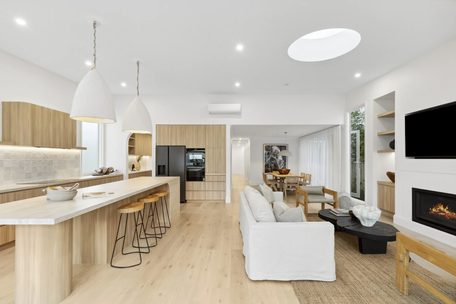 Another reason we love timber flooring is its ability to evolve with your home. Unlike many finishes, timber doesn’t lock you into one look forever — it can be refreshed, lightened, or softened as your style (or the light in your home) changes. In our Dee Why project, we took a dark, shiny solid timber parquetry floor and sanded and bleached it back to a light oak tone. The result was immediate: brighter ambient light, a calmer feel underfoot, and a home that suddenly felt more open and contemporary without changing the layout. It’s a powerful reminder that sometimes the most transformative design move isn’t replacing — it’s reworking what’s already there.